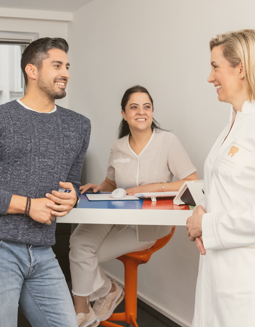 Die individuelle Beratung unserer Patienten in entspannter Atmosphäre ist uns wichtig. Wir nehmen uns gerne viel Zeit, um alles zu erklären und die für sie perfekte Lösung zu finden.